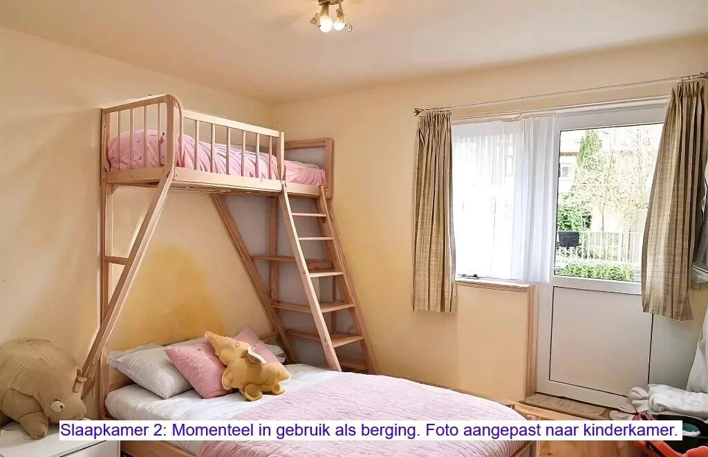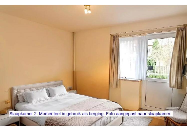 Slaapkamer 2 is momenteel in gebruik als berging, vandaar dat we enkele foto-simulaties van mogelijke indelingen hebben toegevoegd. Via deze 2de slaapkamer is er tevens nog toegang tot een klein, maar gezellig terras.