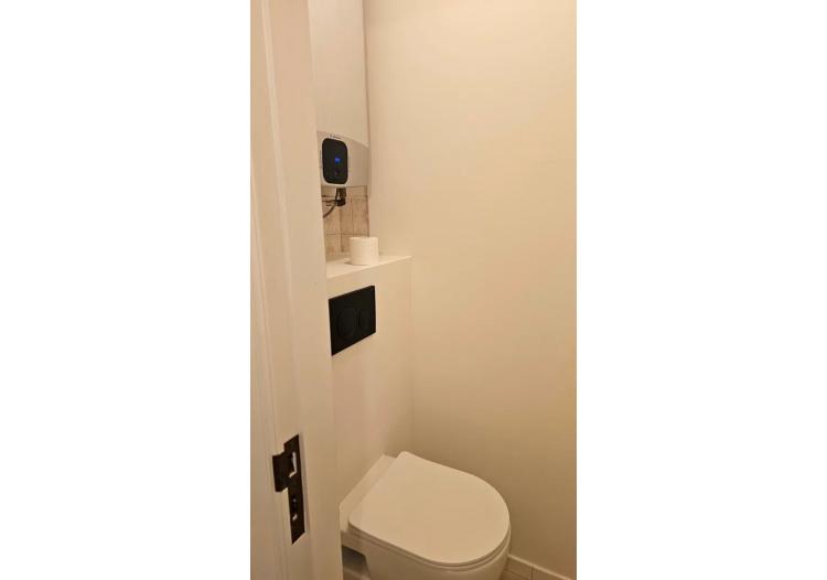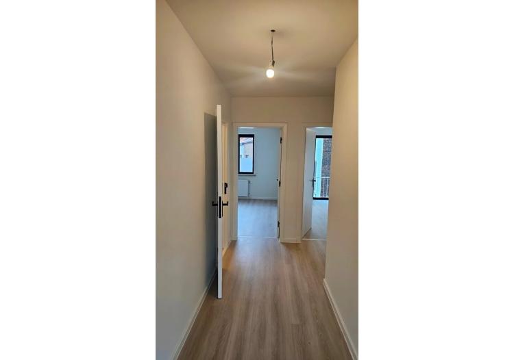 De nieuwe laminaatvloer, radiatoren en elektriciteit zorgen ervoor dat alles voldoet aan de hedendaagse normen. Ook de zwarte ramen geven het appartement een eigentijdse, karaktervolle uitstraling.