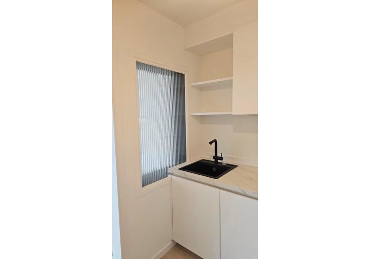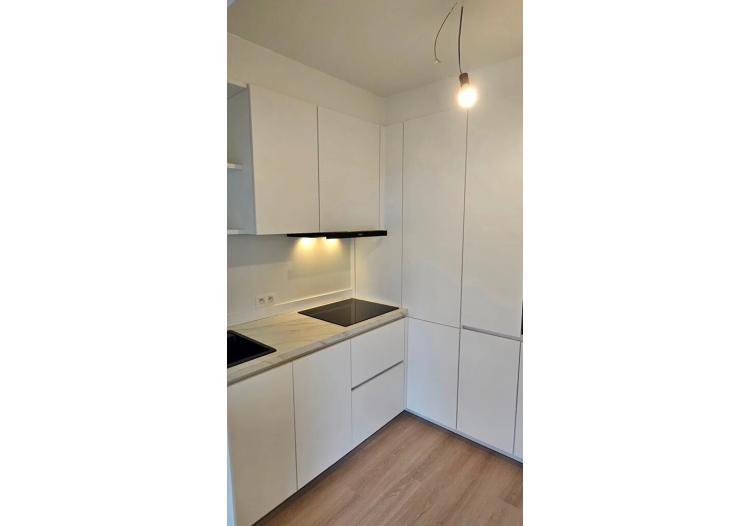 Het appartement werd grondig gerenoveerd en straalt vandaag frisheid en licht uit. De leefruimte geniet van een mooie natuurlijke lichtinval en sluit aan op de nieuwe, moderne keuken, uitgerust met nieuwe toestellen en aansluiting voor wasmachine.