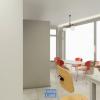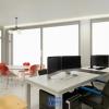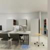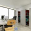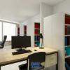 Voorkant van het gebouw: Ruime woonkamer met aangrenzende keuken en badkamer, momenteel ingericht als kantoorruimte.