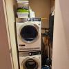 Open woonkamer: Grote berging met dubbele deuren, een gastentoilet en een aparte ruimte voor wasmachine en droogkast.