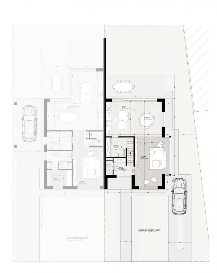 Ontworpen door Cedric Koppers, ademt deze woning een tijdloze stijl met moderne accenten. Op het gelijkvloers vindt u een royale inkomhal met vestiaire en een prachtige smeedijzeren deur die leidt naar de lichtrijke leefruimte met open keuken. Grote raampartijen zorgen voor een directe connectie met de tuin en veel natuurlijk licht.