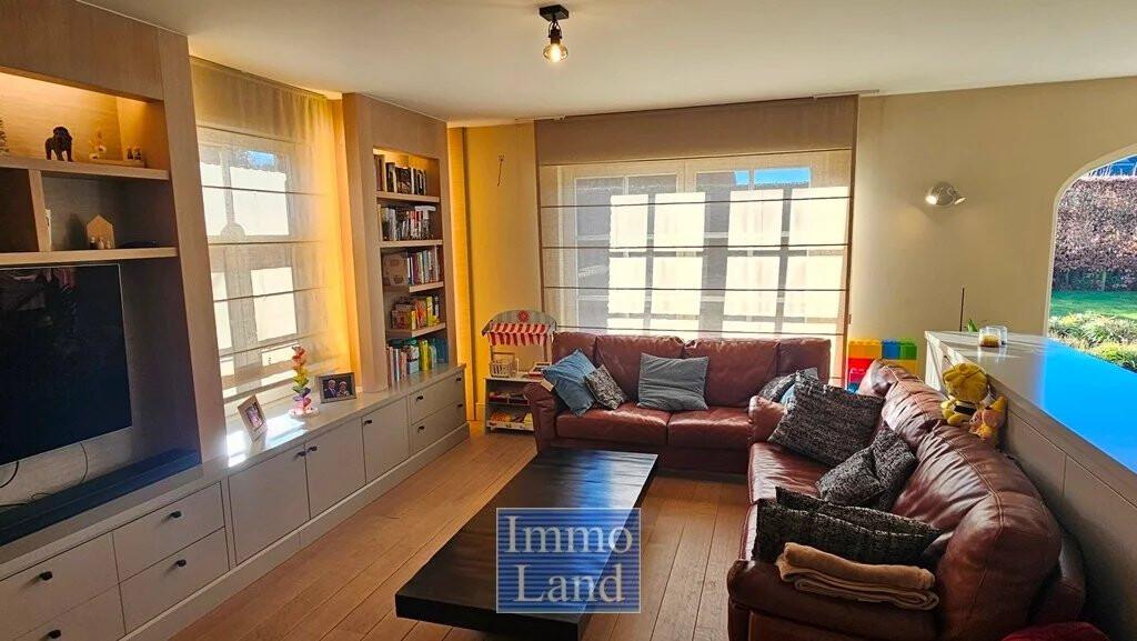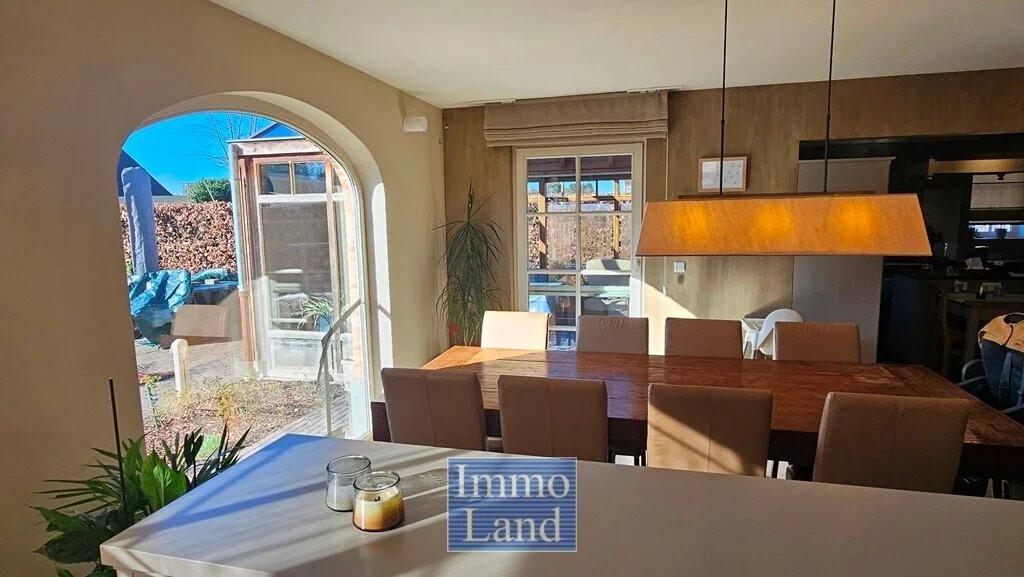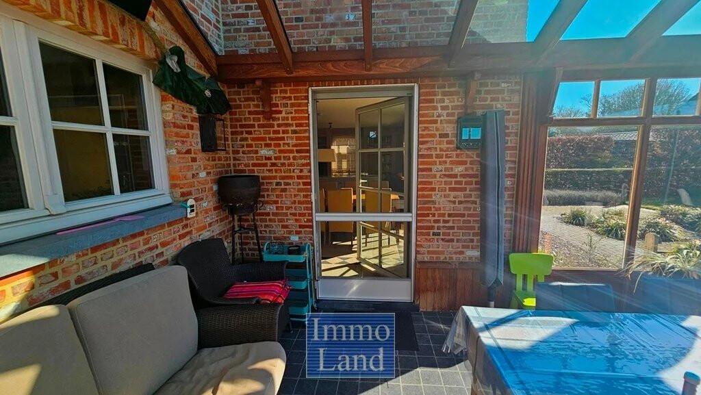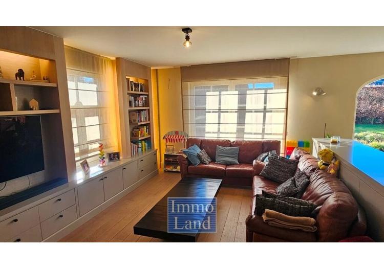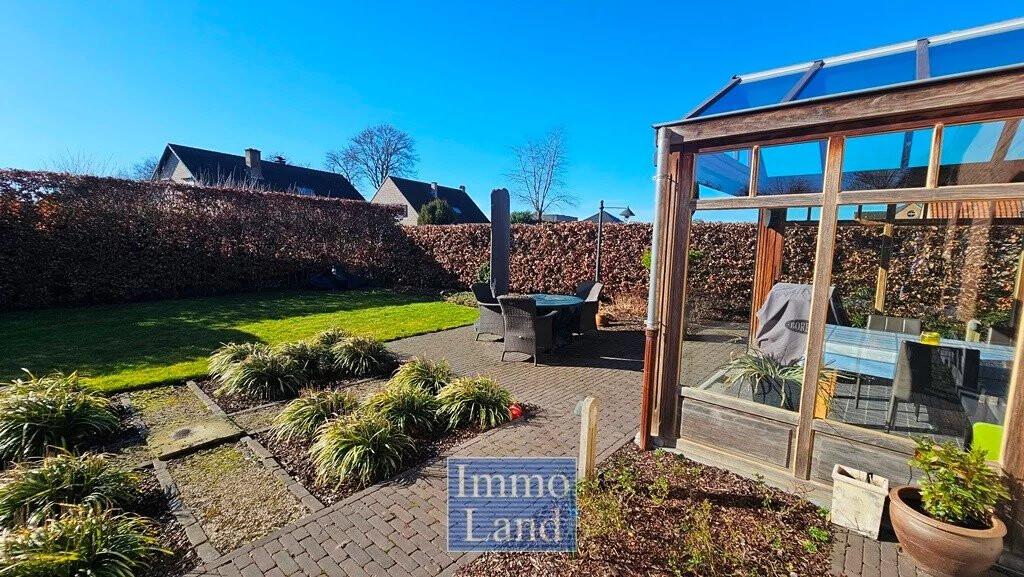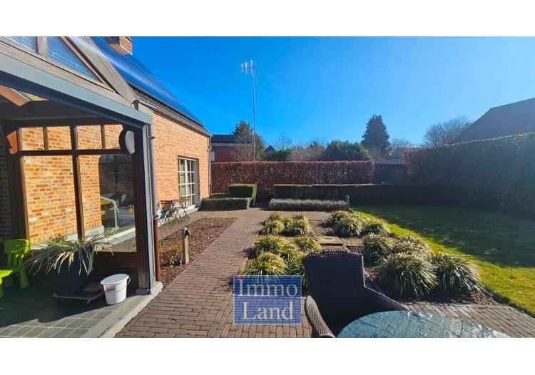 De woning geniet van een ideale zuidoriëntatie, waardoor de leefruimtes baden in natuurlijk licht. Zowel de woon- als eetkamer geven rechtstreeks uit op de tuin.