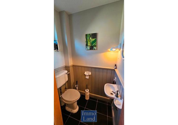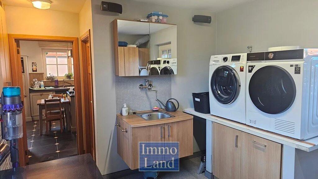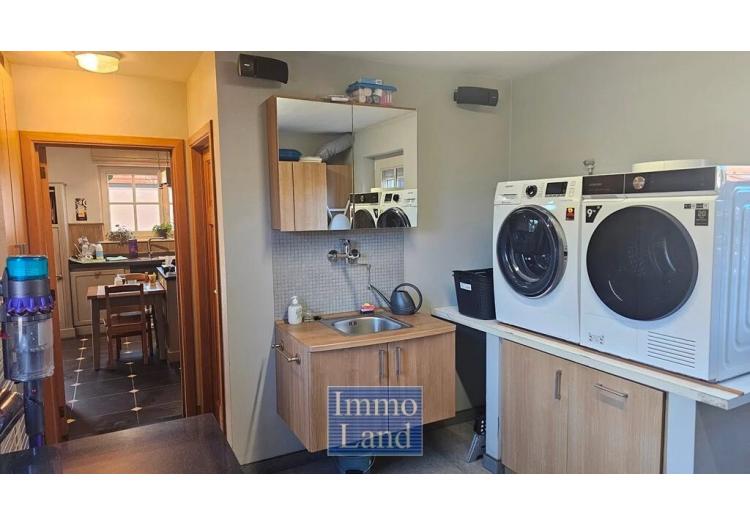 Aansluitend bij de keuken bevindt zich een praktische berging/wasplaats met toegang tot de kelder en de inpandige garage. Deze garage beschikt over een laadpunt voor een elektrische wagen en een extra zolderruimte voor bijkomende opslag.