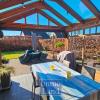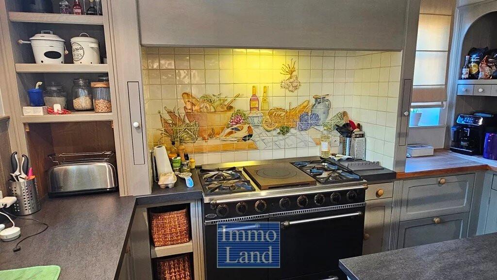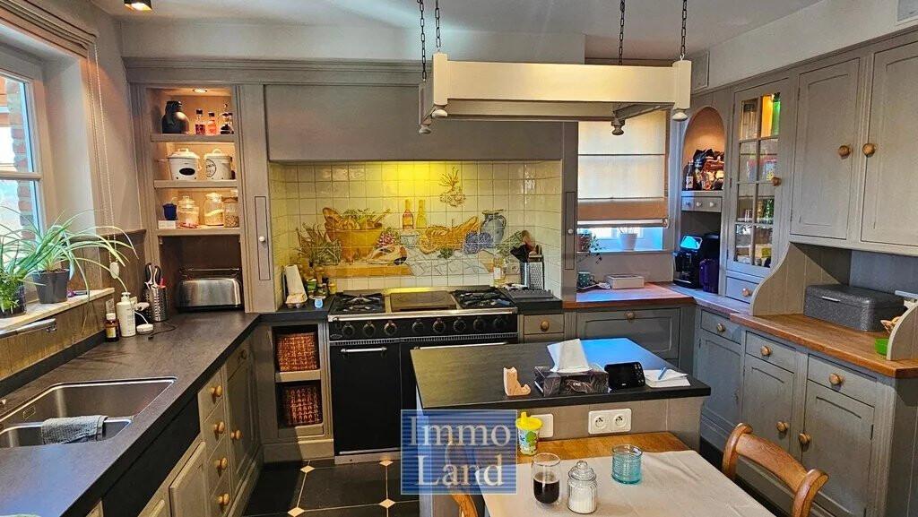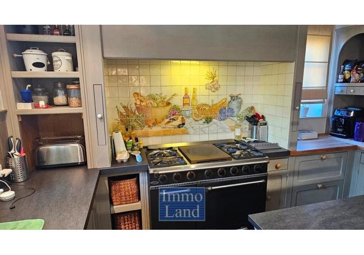 Voor wie graag kookt vormt de keuken een echte troef. Ze is uitgerust met een groot professioneel 5-pits gasfornuis en biedt alle ruimte om uitgebreid te koken en gasten te ontvangen, met de aansluitende eetkamer en pergola.